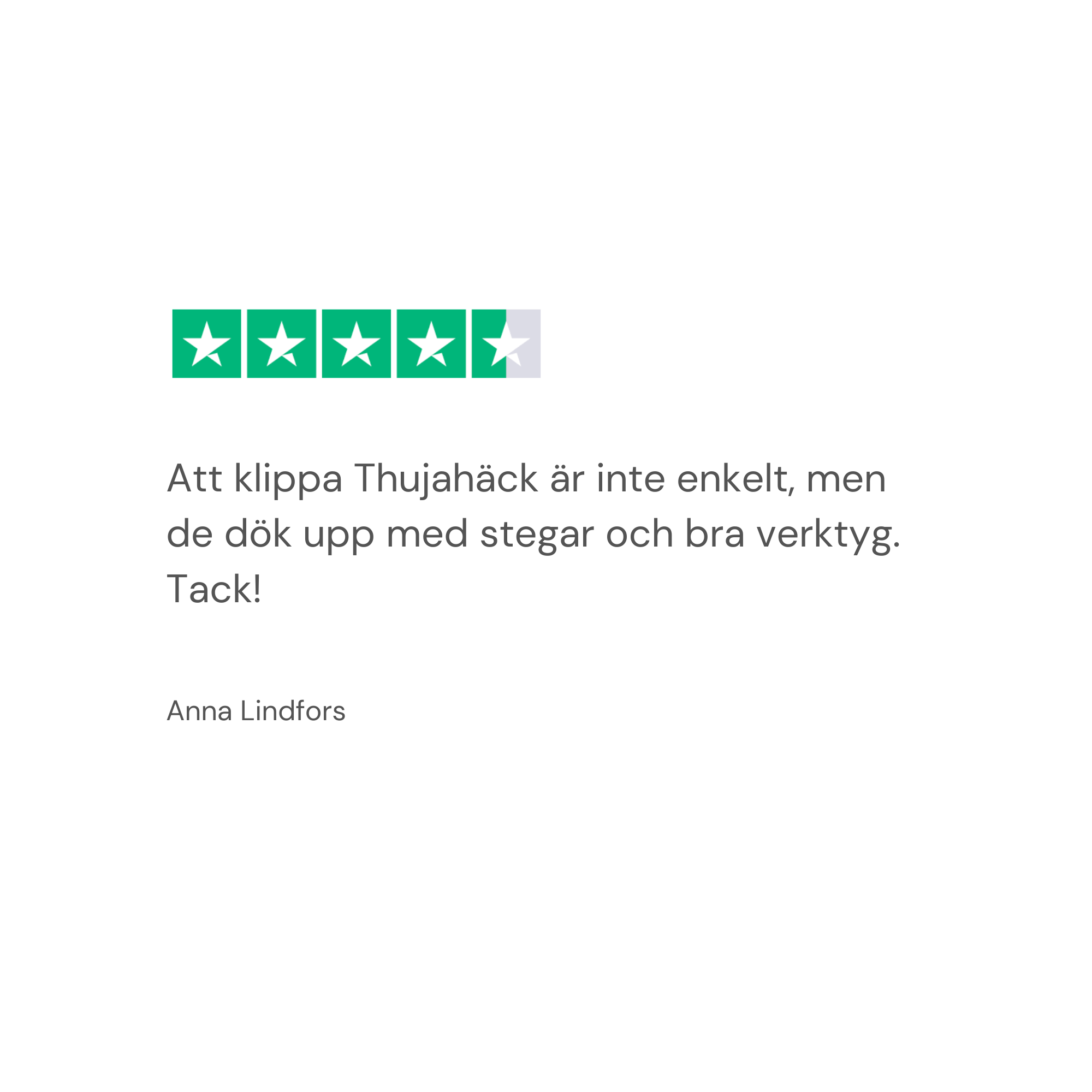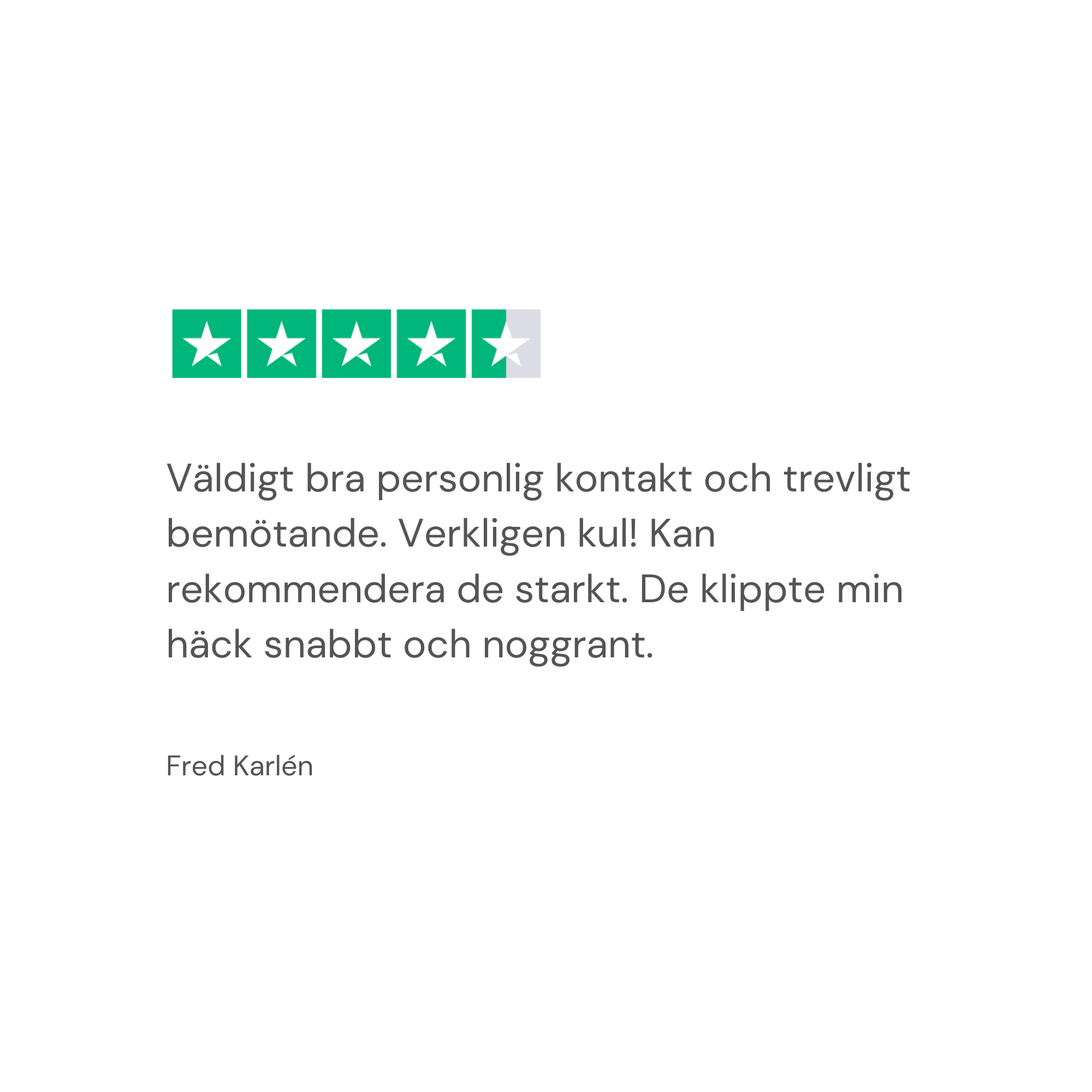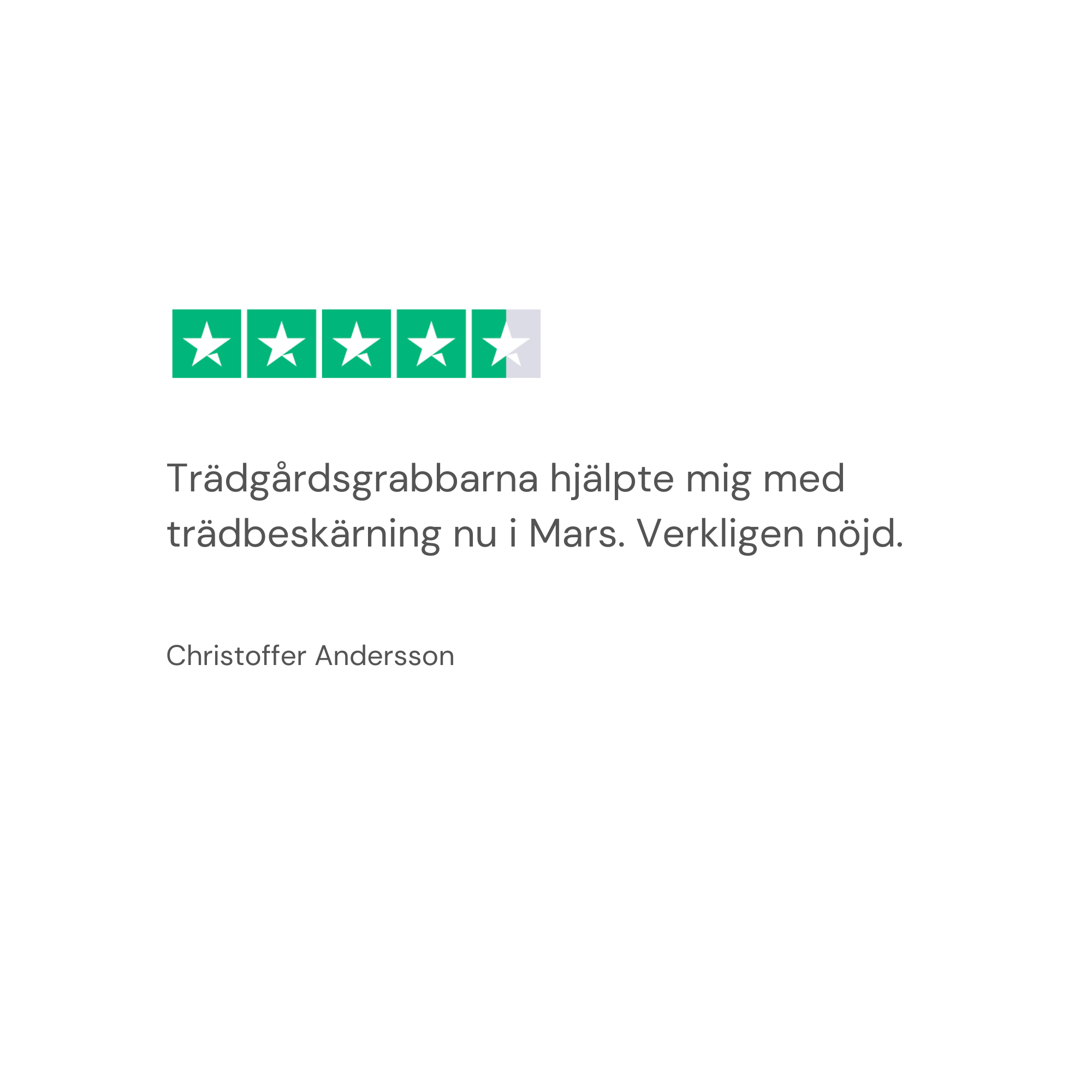 “Många servicebolag är oseriösa och otydliga. Trädgårdsgrabbarna består däremot av ett gäng som är fantastiskt trevliga och proffsiga. De har verkligen gjort skillnad för min trädgård och vardag!”